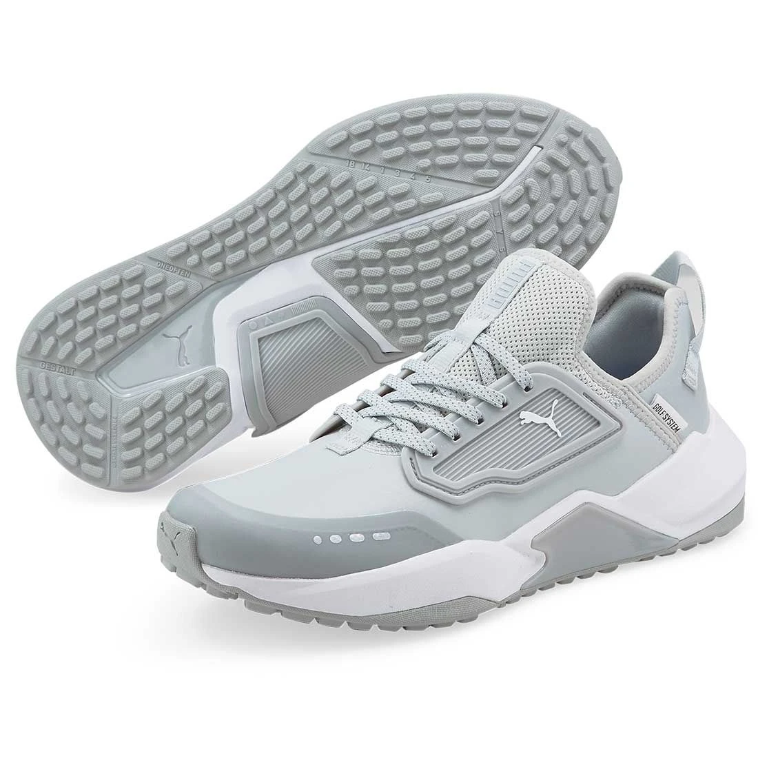 Built for the golfer on the move this shoe is the perfect option to give you style and performance that transitions from the course to the street without missing a step. Each of the individual parts comprise to create the ultimate Golf System – the outsole provides traction, the midsole provides comfort, and the upper provides support and also progressive style that includes some lifestyle elements like the suede toecap, ripstop toebox, and leather heel with PUMA logo.