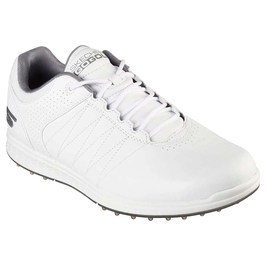 Keep your game grounded, smooth and comfortable with the Skechers GO GOLF Pivot. This sleek classic spikeless golf shoe design features a water-resistant upper with ULTRA GO® cushioning and a Goga Max insole.